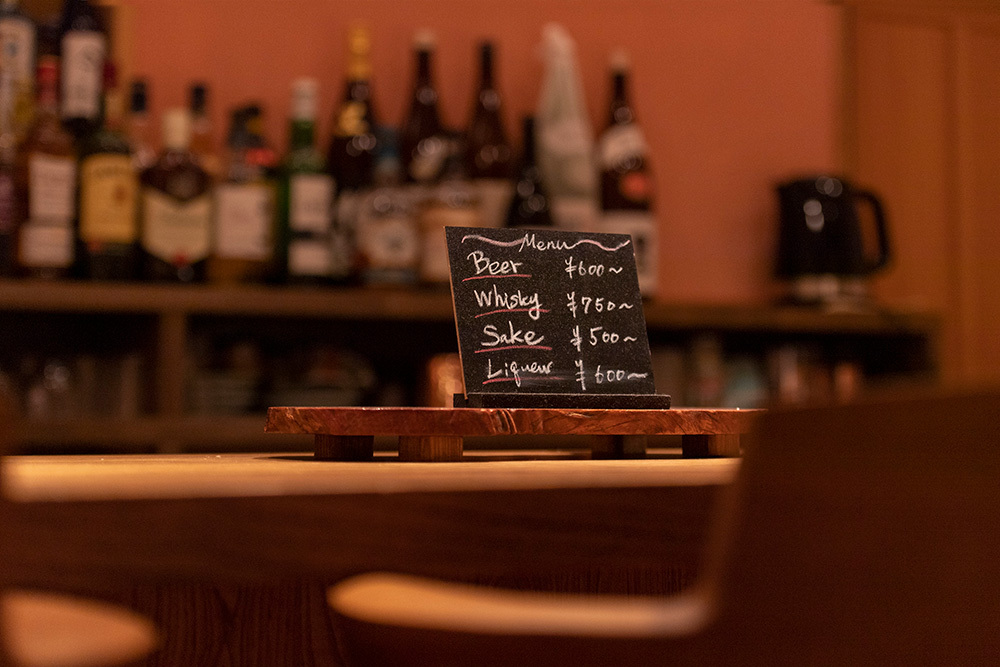 フロント横にはカフェスペース「すみれ」があります。お風呂上がりのご休憩、食後のコーヒーなどにご利用ください。各種お酒もご用意しています。
