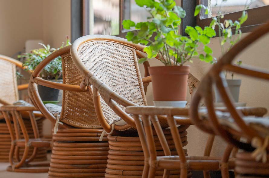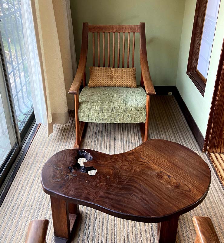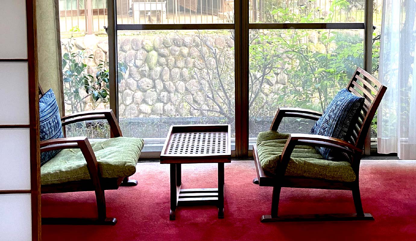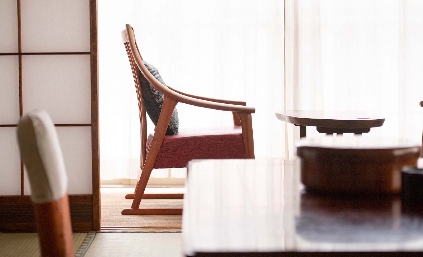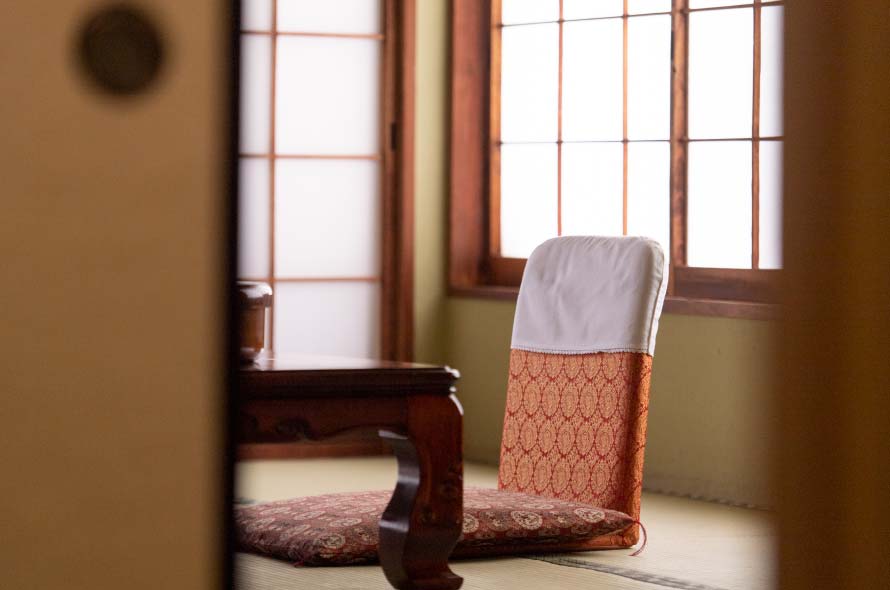 龍鳴館では、お部屋ごとにこだわりの座椅子をご用意しております。