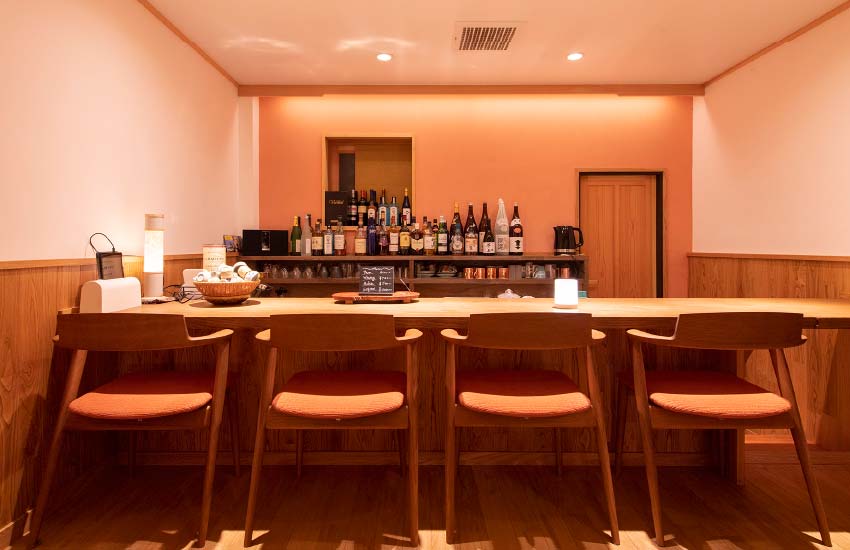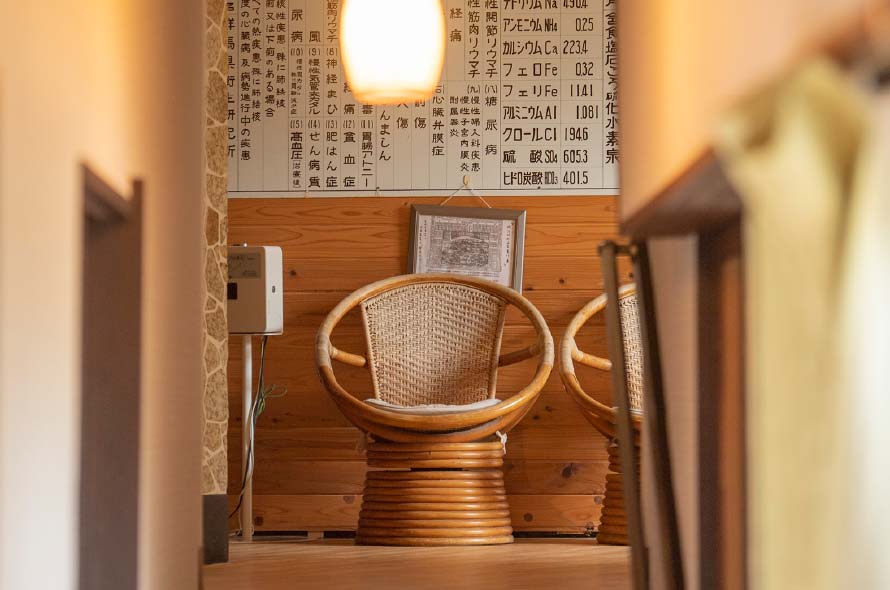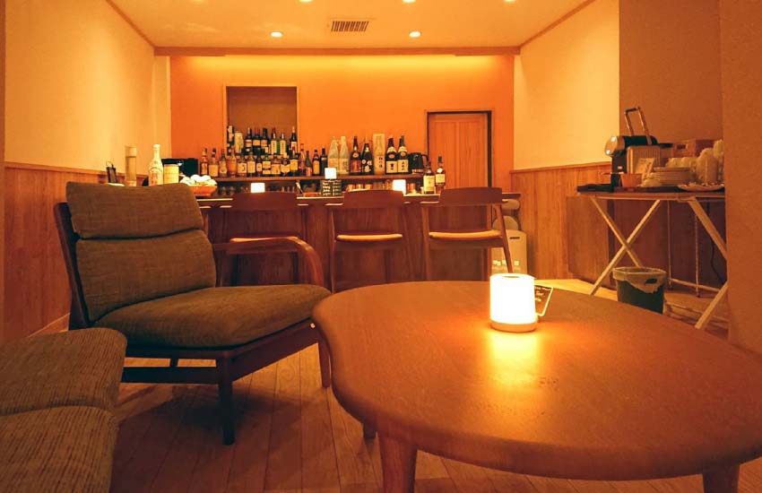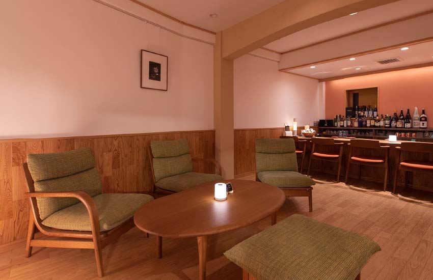 フロント横にはカフェスペース「すみれ」があります。お風呂上がりのご休憩、食後のコーヒーなどにご利用ください。各種お酒もご用意しています。